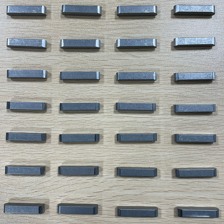 1)平鍵、方鍵銷(xiāo)、鍵銷(xiāo)、半圓鍵內銷(xiāo)和外銷(xiāo)產(chǎn)品外觀(guān)要求:國內大部分管控總長(cháng)公差,能組裝到鍵槽即可,針對兩頭圓弧外觀(guān)沒(méi)有要求,為了提高效率大部分采用沖壓工藝沖圓弧,因此圓弧外觀(guān)比較粗糙。也有采用傳統半自動(dòng)人工加工,先加工好一端圓弧,再二次裝夾加工另一端圓弧,多次裝夾不僅增加了工人的勞動(dòng)力,同時(shí)總長(cháng)公差控制起來(lái)也難于保證;國外不僅要求管控總長(cháng)公差同時(shí)對產(chǎn)品的外觀(guān)也有一定要求,特別針對同一端的左右圓弧弧長(cháng)要一致,同時(shí)加工出來(lái)的半徑要符合國際標準。因平鍵、方鍵銷(xiāo)、鍵銷(xiāo)、半圓鍵是方形材料,其寬度和厚度都有公差,同一端的左右圓弧弧長(cháng)要一致,工裝需要受力裝夾的位置是其寬度才能保證其兩側弧長(cháng)一致,需要同時(shí)做到兩頭弧長(cháng)一致,總長(cháng)控制穩定,雙頭銑扁機床再適合不過(guò)加工平鍵、方鍵銷(xiāo)、鍵銷(xiāo)、半圓鍵,大量減輕了工人的工作勞動(dòng)力。