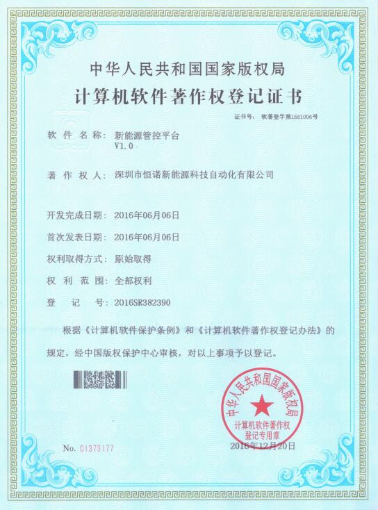 恒諾三軸銑扁機著(zhù)作權證書(shū)