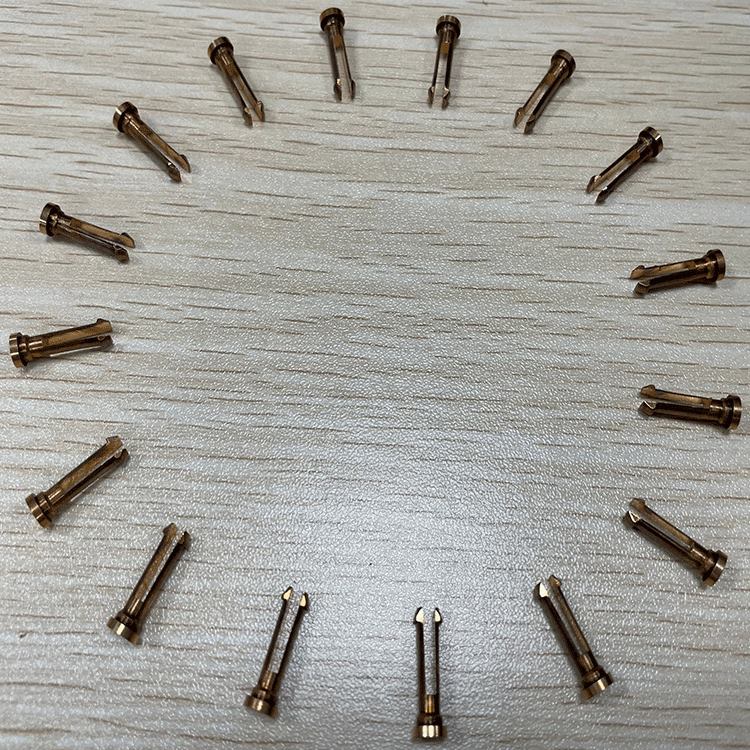 銅卡扣分為兩種材料:一種材料是黃銅,另一種材料是紫銅。兩種材料其加工產(chǎn)量也不一樣!傳統的加工方式:采用普通小臥式銑床,人工放料一個(gè)一個(gè)銑,因銅卡扣有兩道工序銑雙扁及開(kāi)槽,采用這種加工方式需要分兩次裝夾,不僅容易導致產(chǎn)品夾傷,其二次裝夾也有誤差,產(chǎn)能也上不去。當前的加工方式:采用全自動(dòng)銑槽機不僅效率能提高,品質(zhì)也有保證,而且通過(guò)振動(dòng)盤(pán)上料,節省人工,在同行中也有競爭優(yōu)勢!