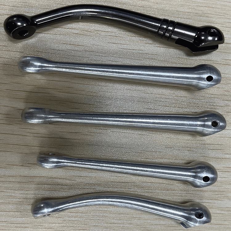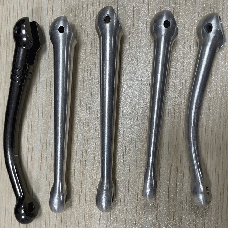 漁具搖臂是屬于釣魚(yú)竿配件的一款零件,其屬于戶(hù)外用,要方便攜帶,體積不能過(guò)重,于是采用鋁合金來(lái)減輕重量。但漁具搖臂生產(chǎn)工藝比較復雜,特別是在二次加工過(guò)程中兩端都需要銑扁、鉆孔、倒角,且需要分好方向來(lái),于是大家常用的加工工藝有以下幾種: